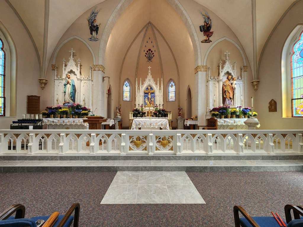 Our communion rail is installed at Mother of Dolors Parish. Some of our mature parishioners may remember receiving the Eucharist kneeling at the altar rail. When permission was given to receive the Eucharist standing up (1967) and in the hand (1977), many of these beautiful rails were removed from the sanctuary.