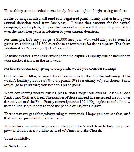 Please read the following letter that Father Seth sent out in November.